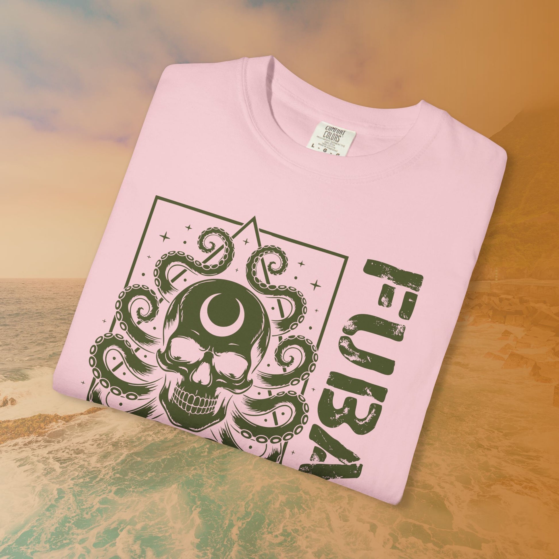 This piece perfectly blends the cynicism of military slang with a Lovecraftian/Cosmic Horror vibe. The distressed grunge style and dark aesthetic make it an ideal statement piece for: