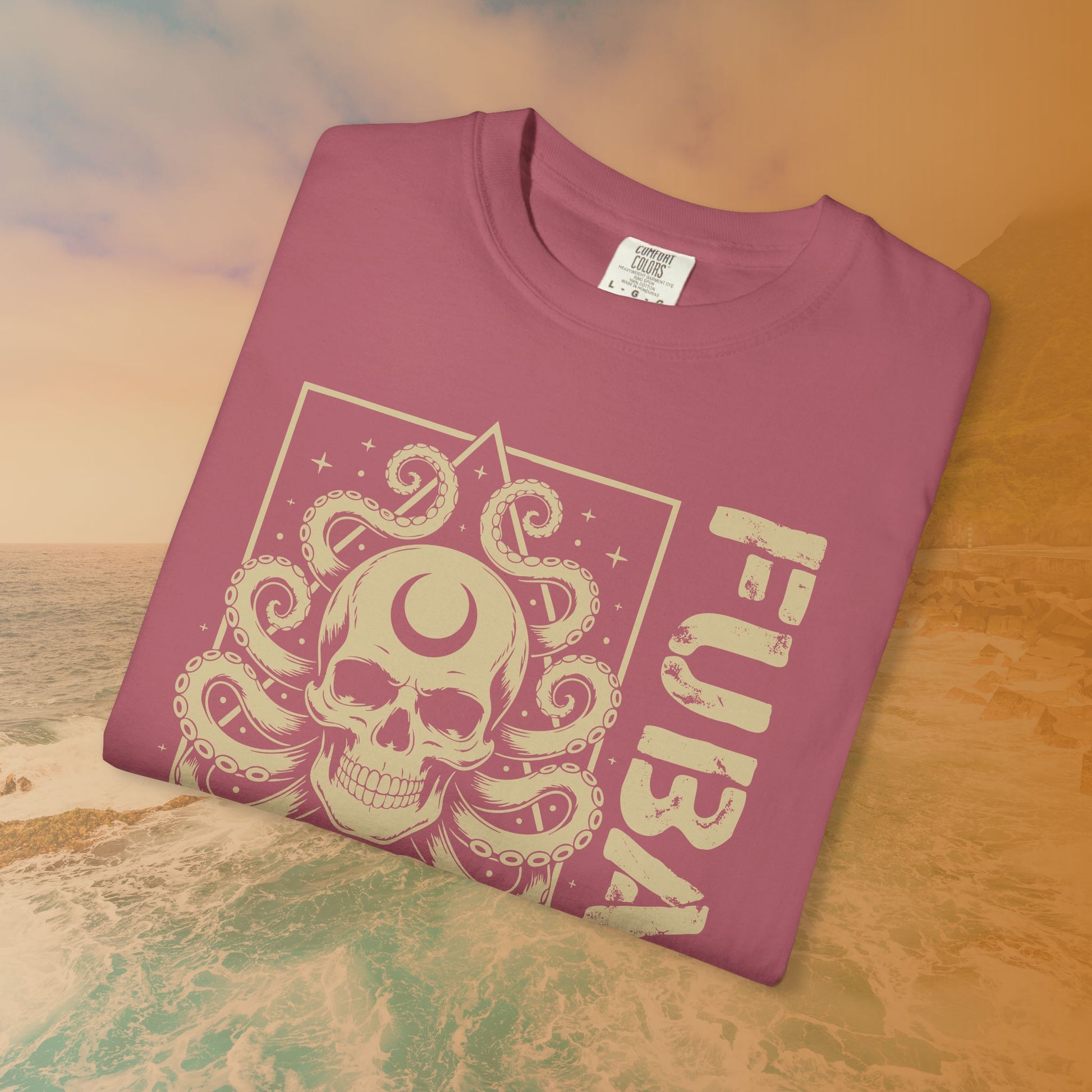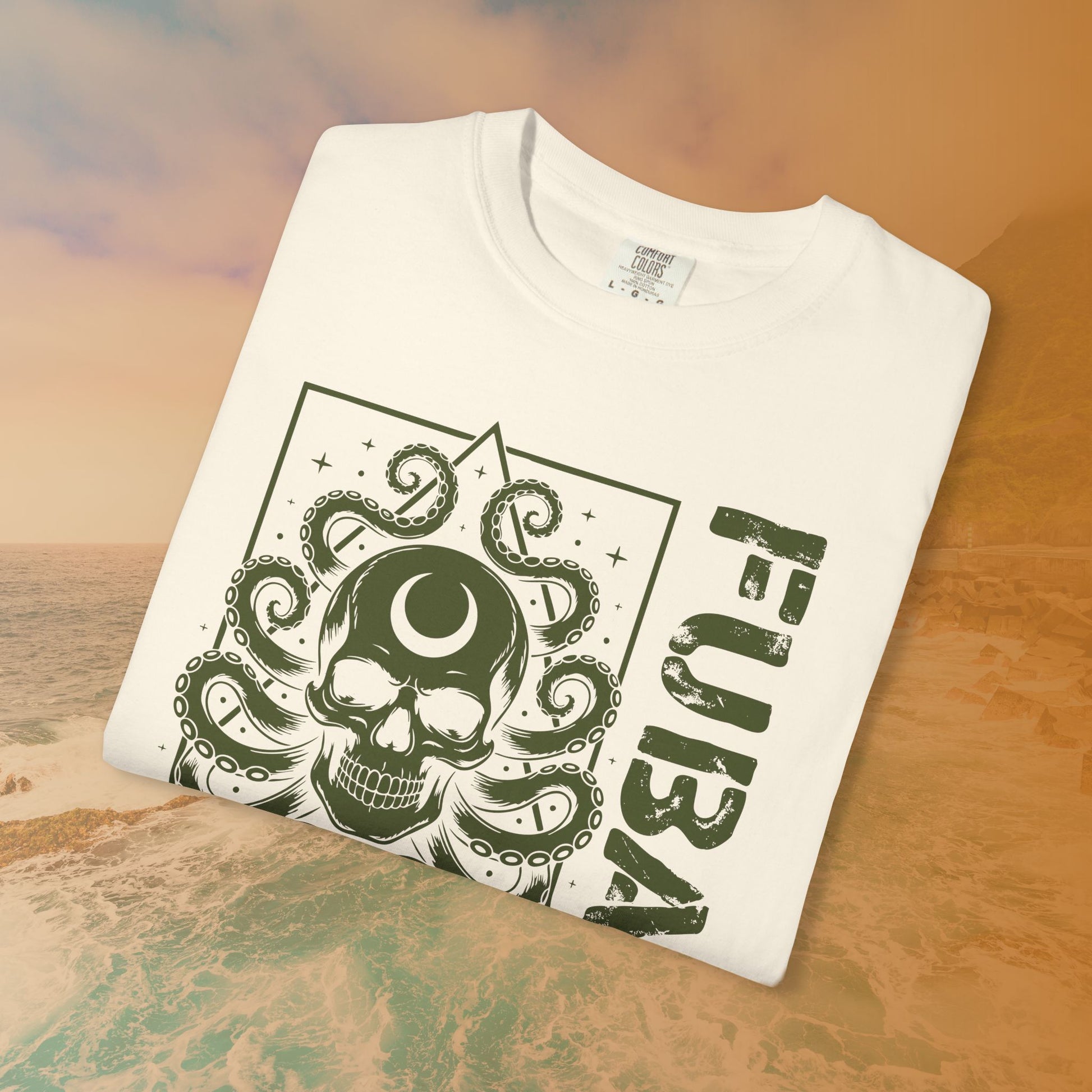 When the situation is completely Fouled Up Beyond All Recognition (FUBAR), you might as well embrace the chaos! This unique design features the infamous acronym FUBAR next to a stunning graphic mashup: a Skull with a Crescent Moon on its forehead, surrounded by menacing Octopus Tentacles.