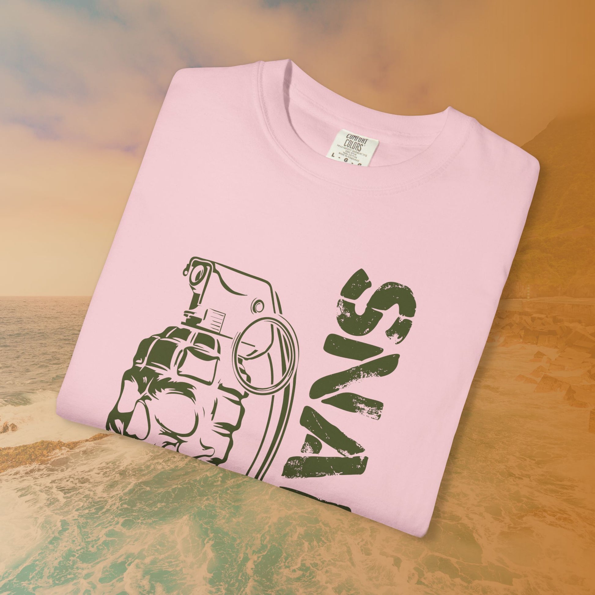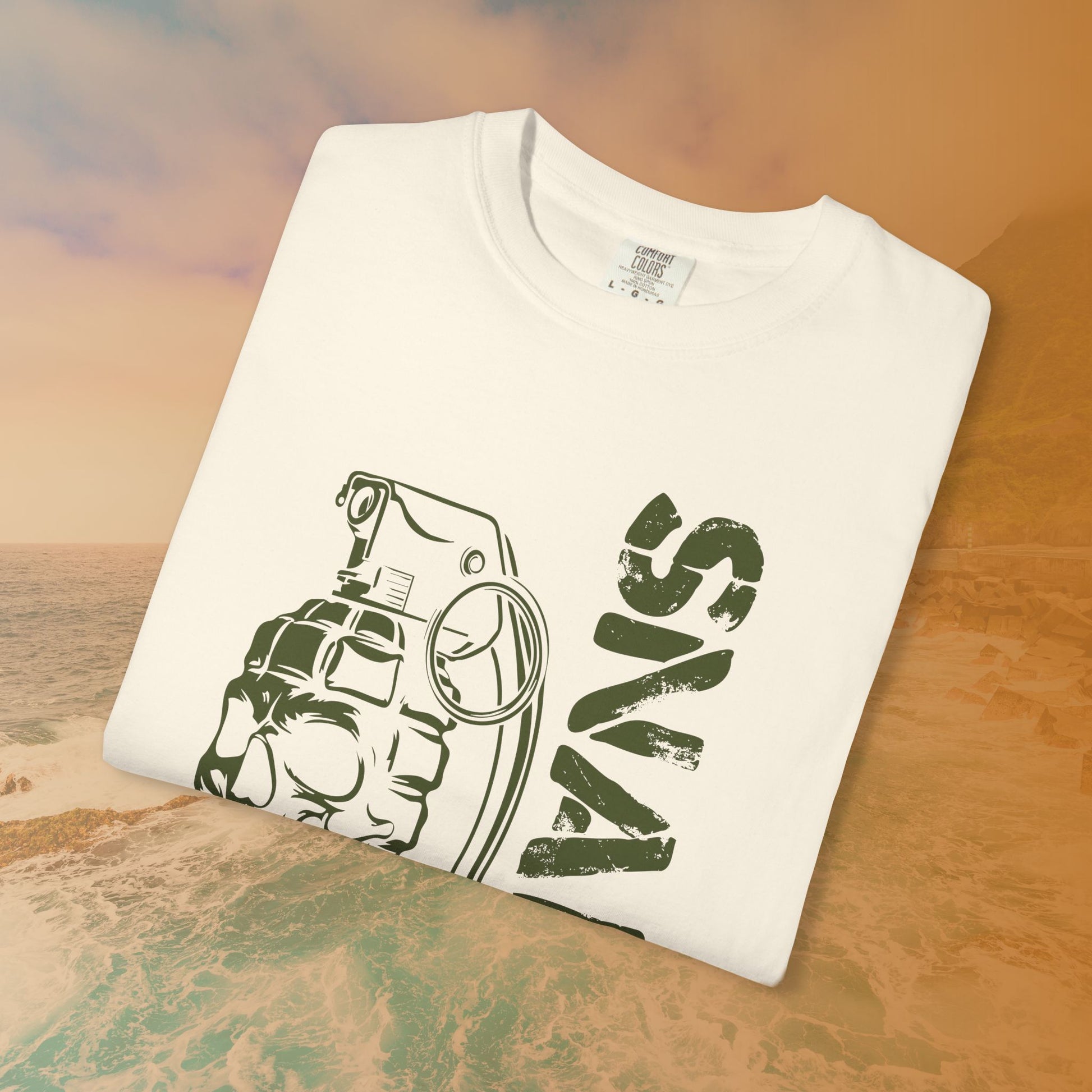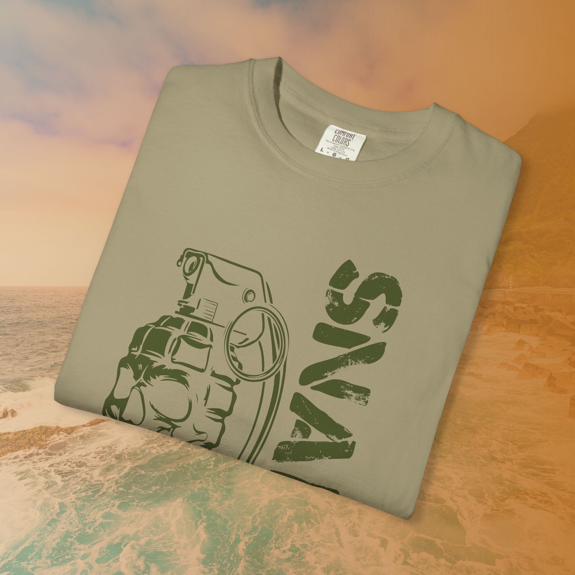 When everything is Situation Normal: All Fouled Up (SNAFU), this shirt captures the chaos perfectly. This bold design pairs the famous military slang acronym, SNAFU, with a striking graphic of a skull and hand grenade merged into one solid object.
